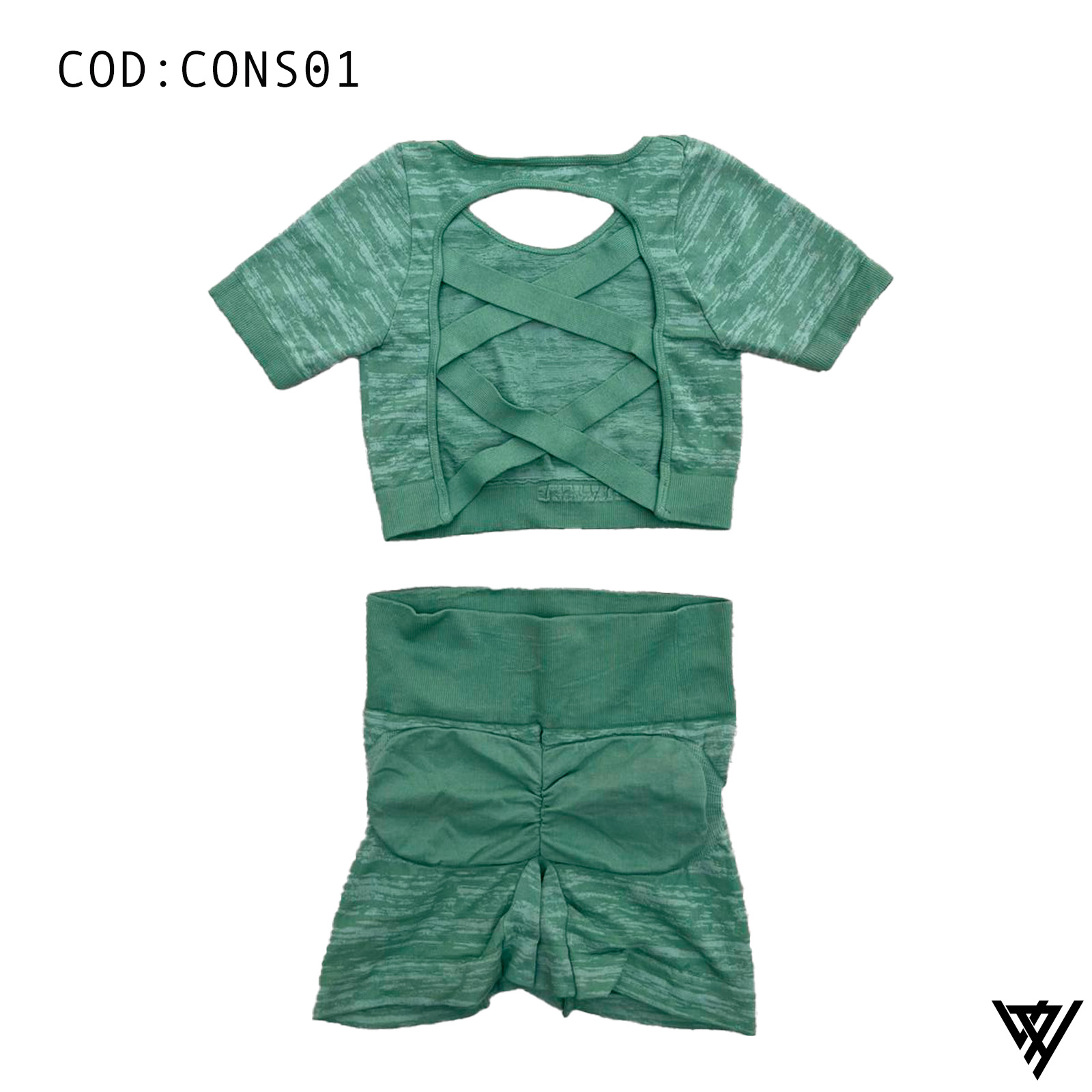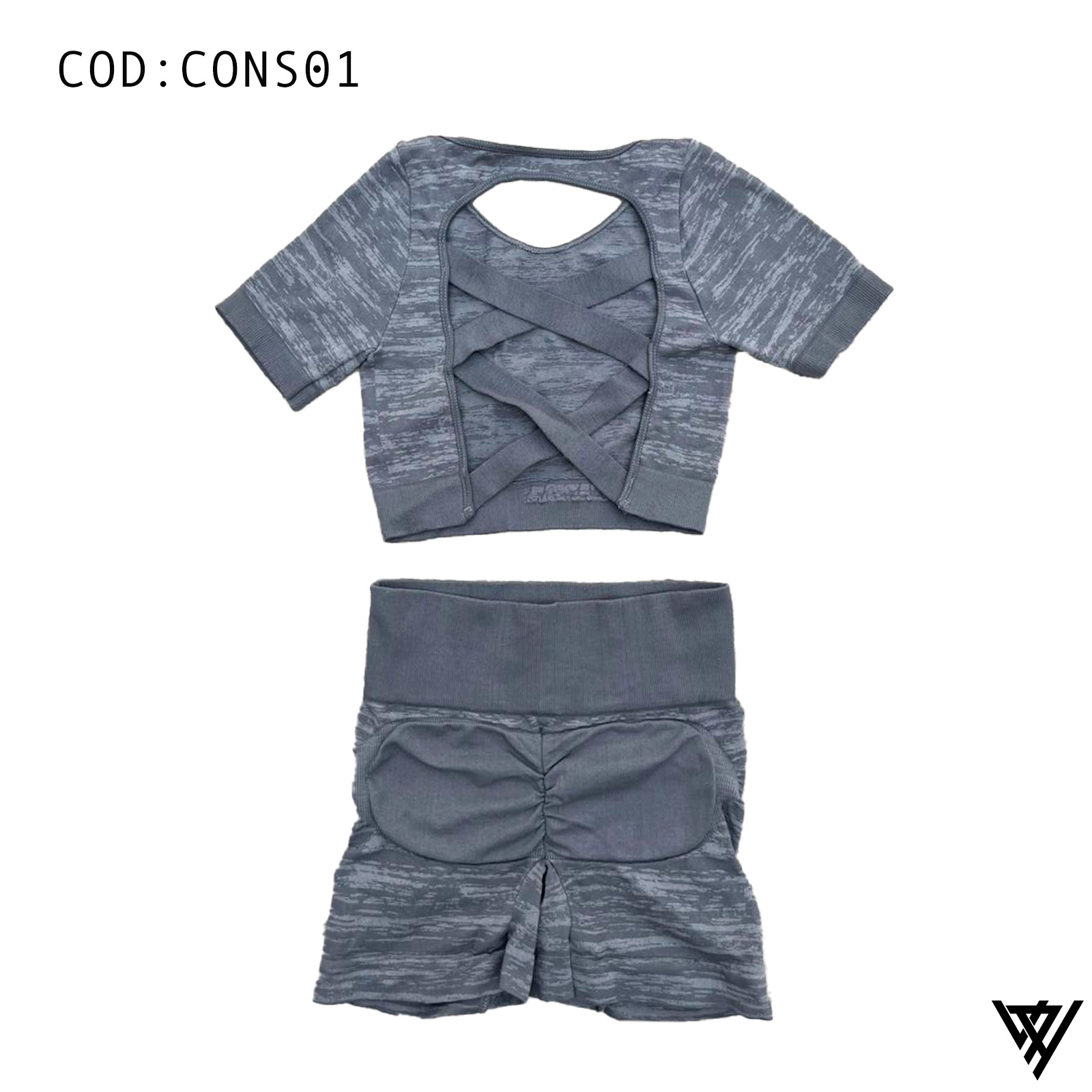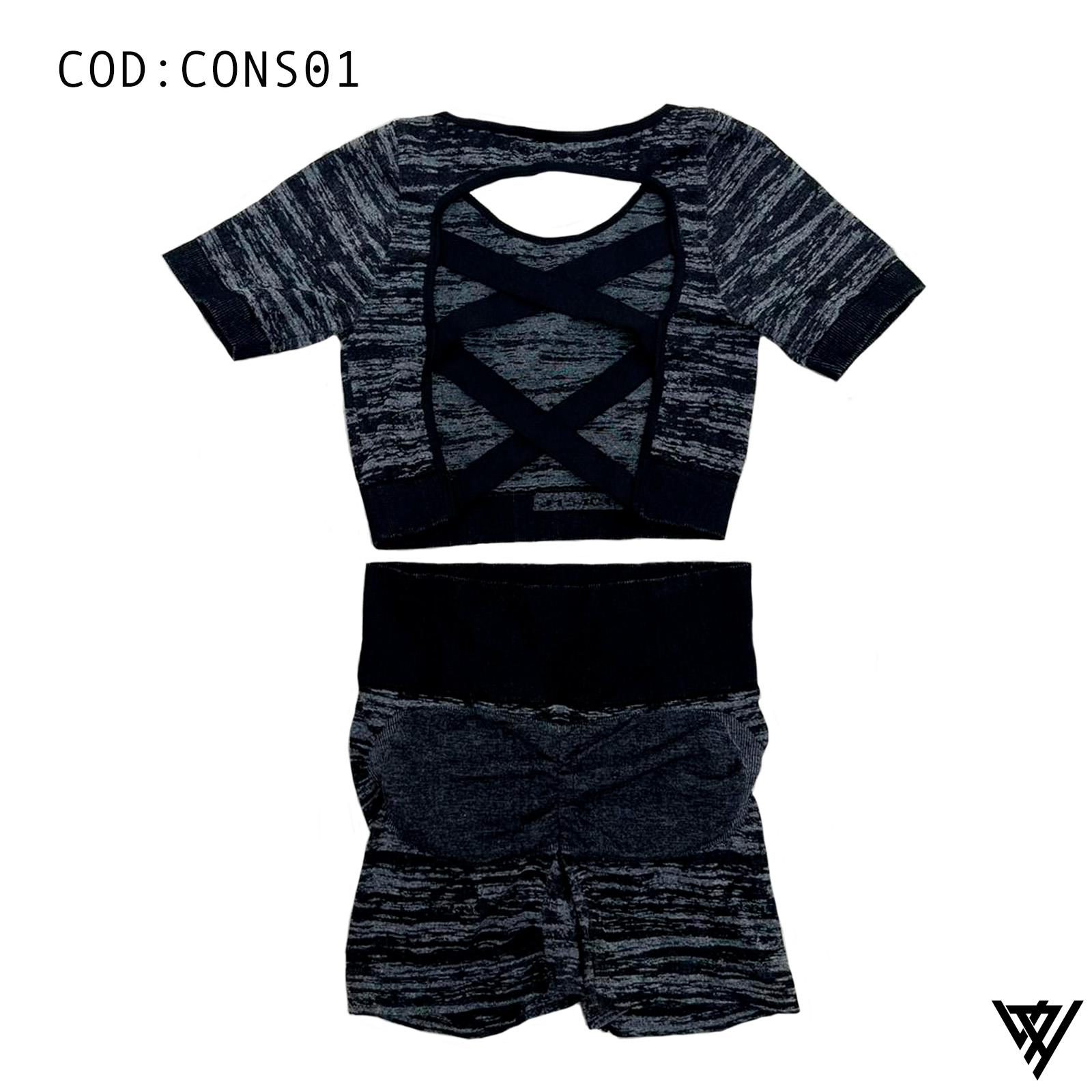 Experimenta la combinación perfecta de estilo y comodidad con nuestro conjunto de shorts y blusa diseñado para destacar tu elegancia activa. La blusa presenta un detalle único de tirantes cruzados en la espalda, añadiendo un toque de sofisticación a tu look deportivo.